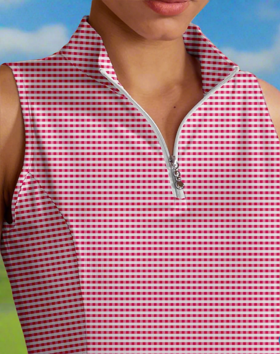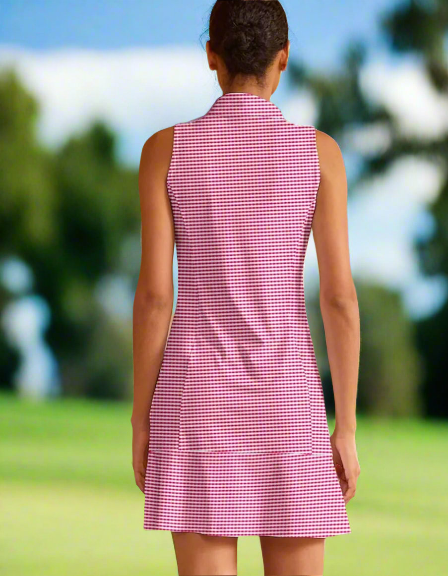 Check out this dress! With a pretty pink and white check and two side pockets you will not want to take this dress off. The zip front make it that much more flattering and the ruffled skirt adds a little "flirt" to it! Comes with separate pull on shorts!