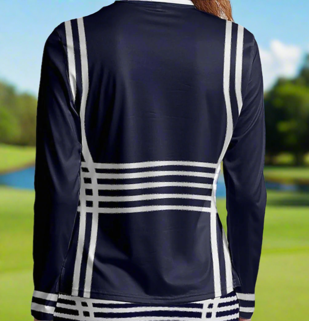 Stay cool and look cool in our Picket Fence Long Sleeve Polo! Made from our famous 90% polyester, 10% spandex blend with SPF 50, this classic polo with zipper collar offers a great fit and lots of comfort. Perfectly pairs with any of our white skirts or our Picket Fence Skirt (buy both as a bundle and get a discount!)....see it under Picket Fence Bundle!