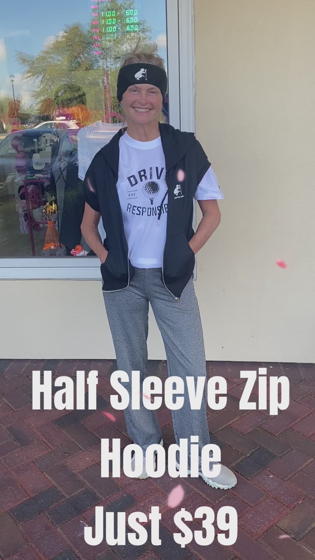 Look cool and hip in this Half Sleeve Zip Hoodie. Wear it casually or on the course as a nice warm up sweatshirt. Zipper front. 95% Polyester and 5% Elastane for a soft and comfortable feel. Looks great with our Putter Girl Pants or for a more casual look, with a Putter Girl Sweats!