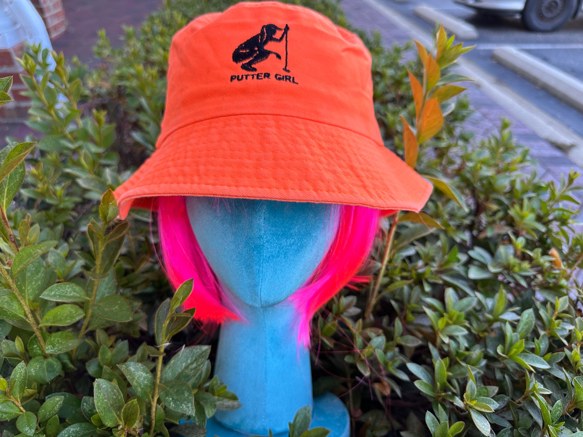 Putter Girl LOVES bucket hats and these are some of our favorites! These bright colored hats are adjustable and come in three fun colors...Neon Pink, Orange and Yellow. Looks great with SO many of our fun colored polos and shirts! 100% woven cotton/polyester fabric. Embroidered Putter Girl logo.