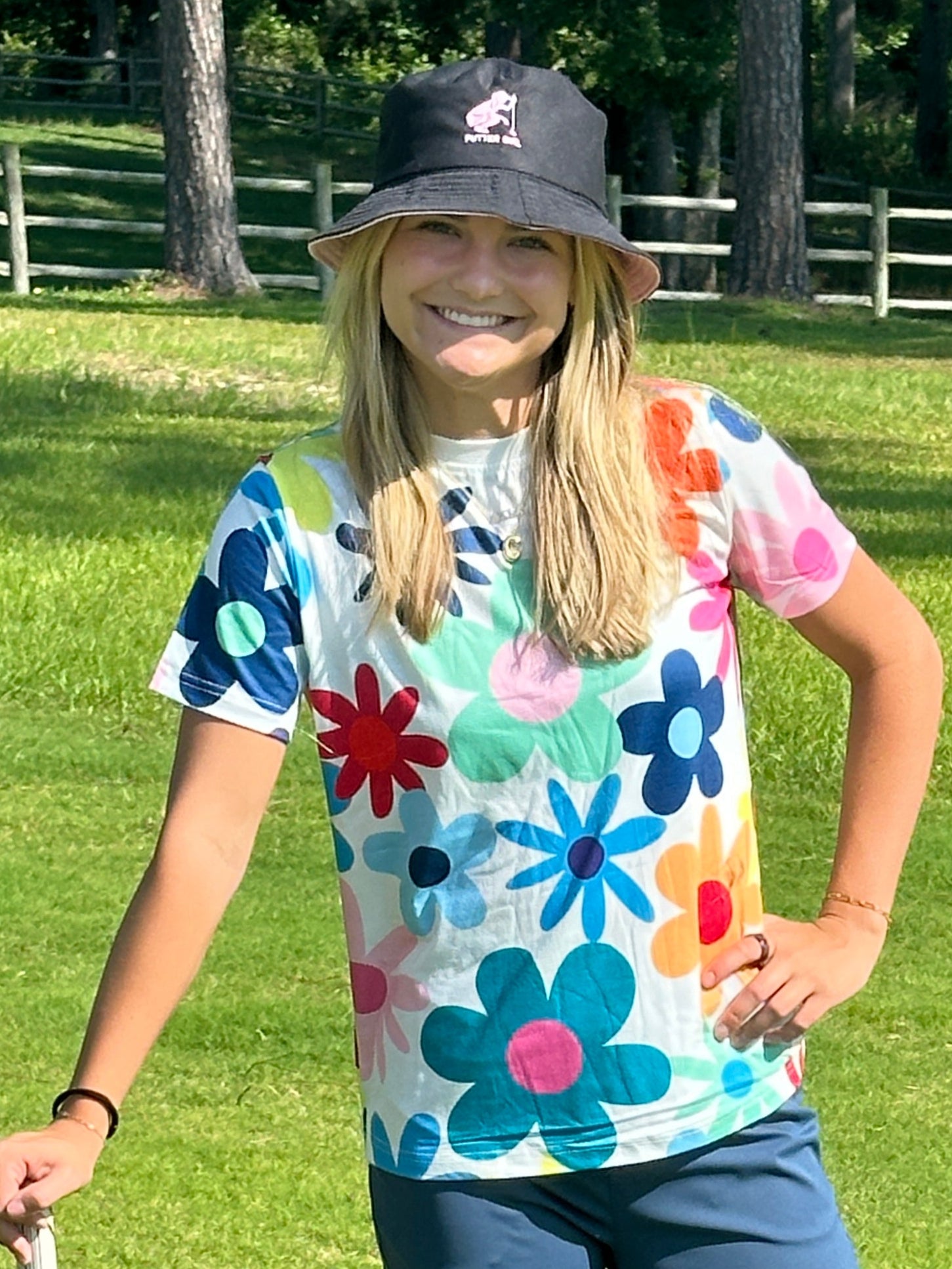 Suit up for a round of golf in The Bucket Hat. Keep the sun out of your eyes and stay cool with this stylish essential. Fore-ward thinking design for a hole-in-one look. Comes in two colors that work great with so many Putter Girl styles.