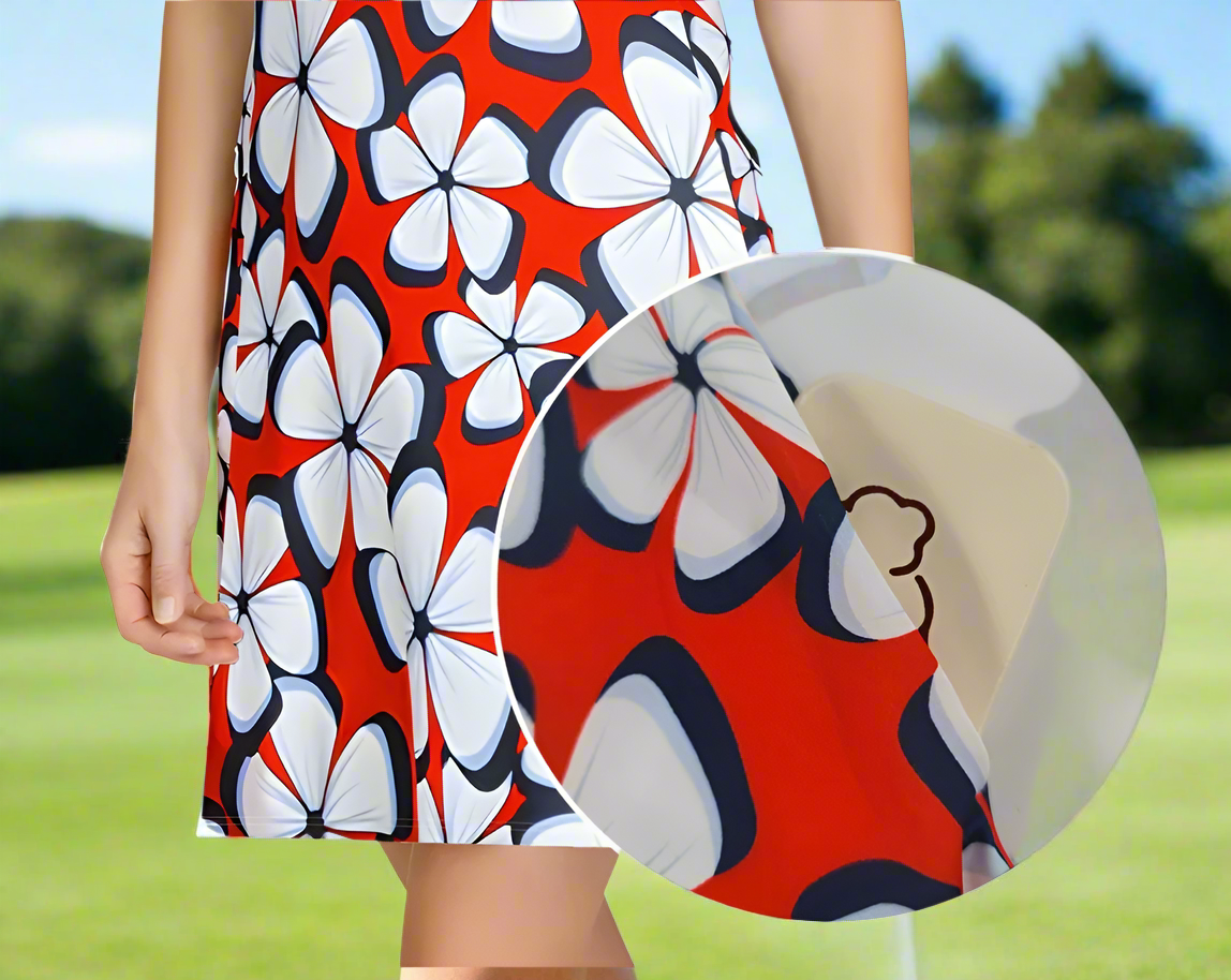 This very feminine A-Line style dress is so comfortable and cool. Perfect for the upcoming Memorial Day or 4th of July Holidays! This polyester blend offers a nice stretch and the casual stand up zip up collar adds a clean style!