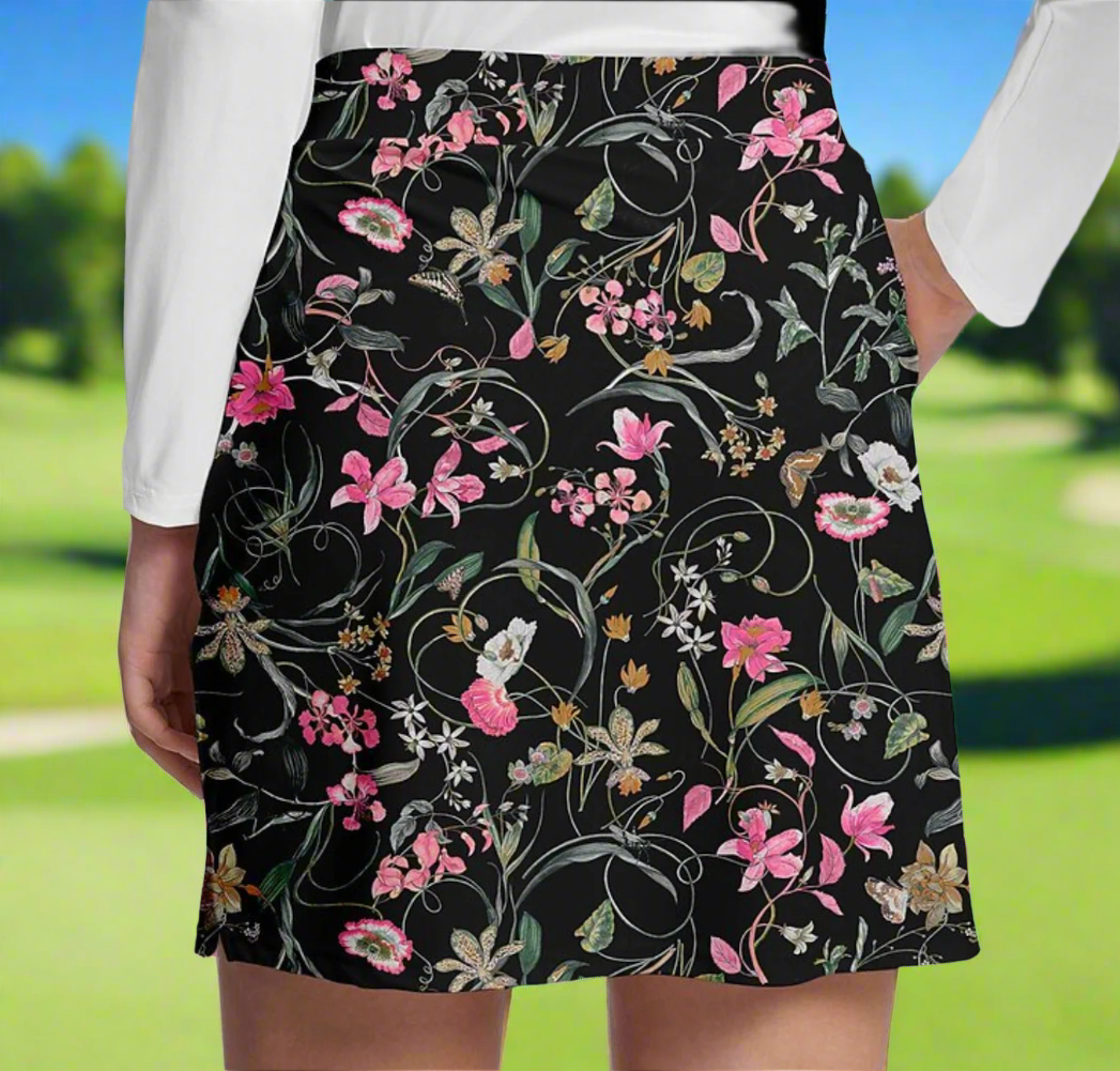 If flowers are your thing, this skirt is made for you! Pair it with our Wild Flower Polo or a solid top for a fun, feminine look that's super comfy. It features two handy side pockets and built-in shorts. Plus, it offers SPF 50 protection to keep you safe in the sun! A little longer length, too! See size chart!